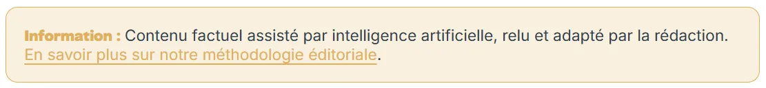 Lorsque des outils d’intelligence artificielle interviennent de manière significative dans la production d’un contenu factuel, une mention spécifique est ajoutée en bas de l’article afin d’en informer le lectorat.